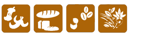 Legumes, fruta, cascas, cascas de ovos, pão, massa, sacos de chá e café, folhas, relva, caules, flores, ramos, palha, feno, aparas de madeira, papel, cartão, palha, madeira não tratada, cinzas.